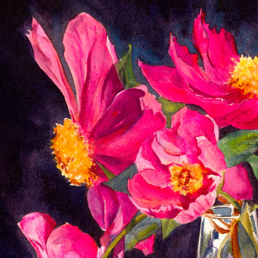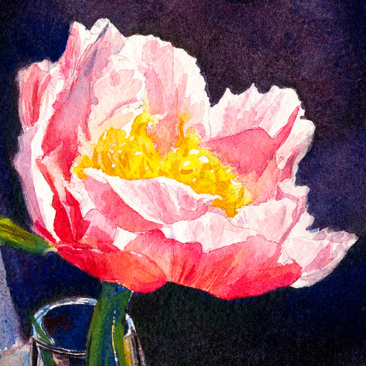 Seeking Sunbeams: A Vibrant Watercolor Print of Pink Peonies