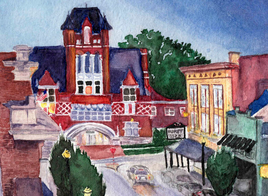 Bourbon Capital Charm: Watercolor Sunset of downtown Bardstown, KY