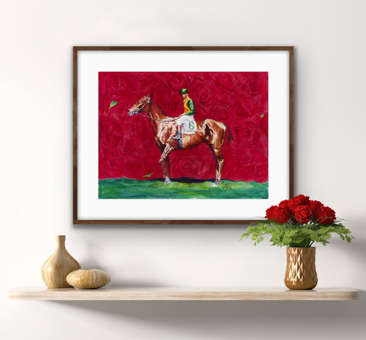Red Roses and Racing Legends: Aristides & Oliver Lewis Equestrian Art Print
