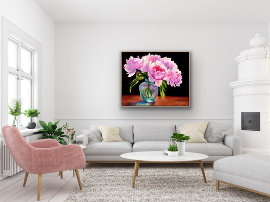 Seeking Sunbeams: A Vibrant Watercolor Print of Pink Peonies
