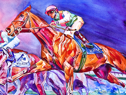Misty Morning : A Serene Watercolor Horse Farm Print
